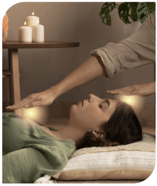 La séance se déroule dans un environnement calme et mon praticien appose ses mains sur différentes parties de votre corps.